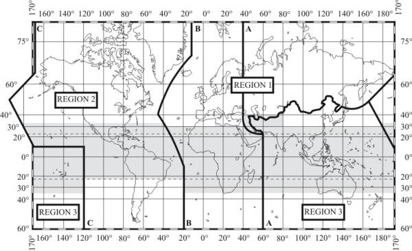 L'union internationale des télécommunications a divisé le monde en trois régions dans le but d'harmoniser la gestion des fréquences radio.